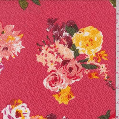 2 1/4 YD PC-Salmon Floral Bouquet Textured Liverpool Knit Fabric