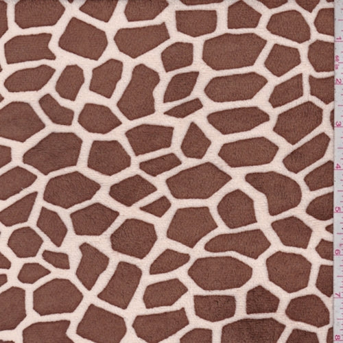 2 3/4 YD PC-Beige/Brown Giraffe Print Minky Fleece Knit Fabric