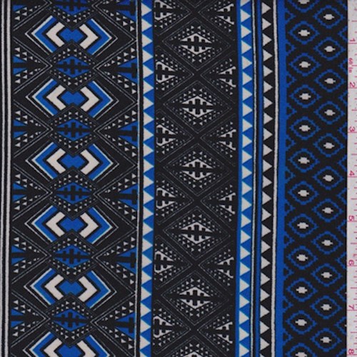 2 5/8 YD PC-Black/Cobalt Tribal Stripe Scuba Knit Fabric