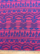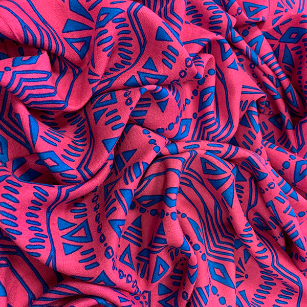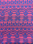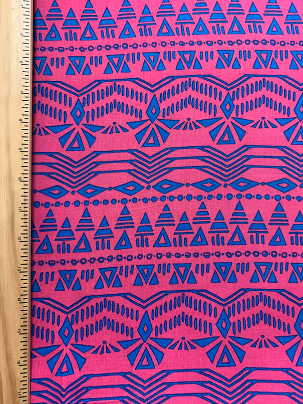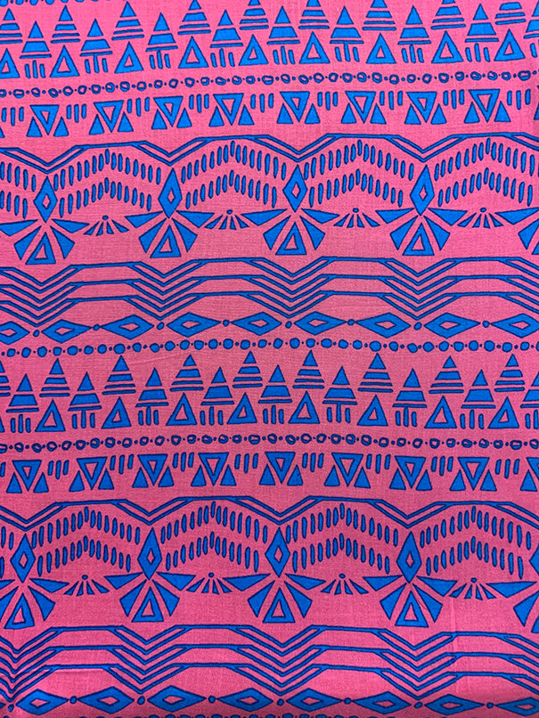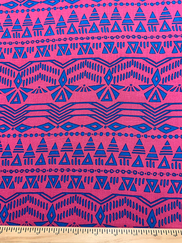 2 5/8 YD PC -Bright Blue Aztec Print on Neon Pink Rayon Chalis Fabric