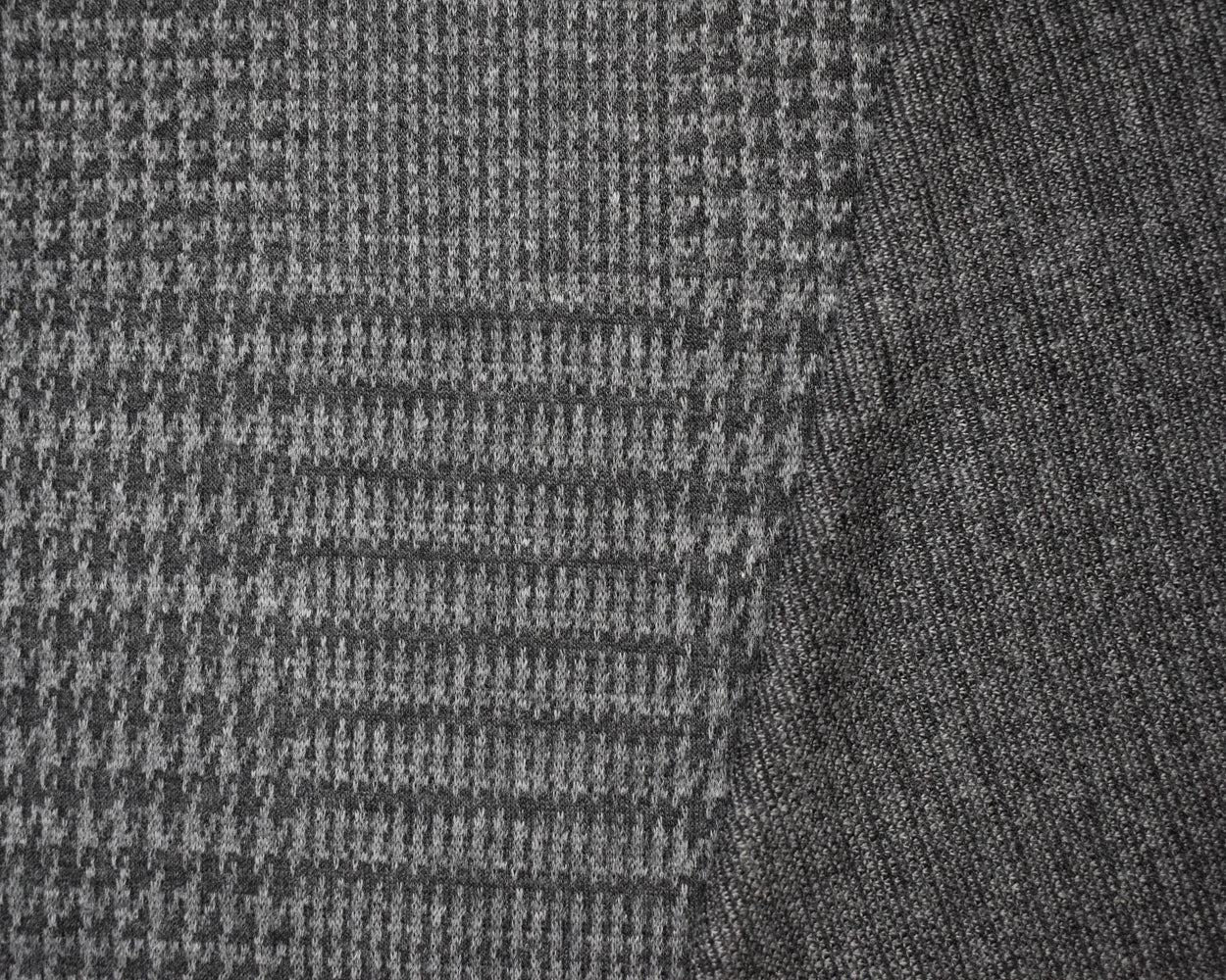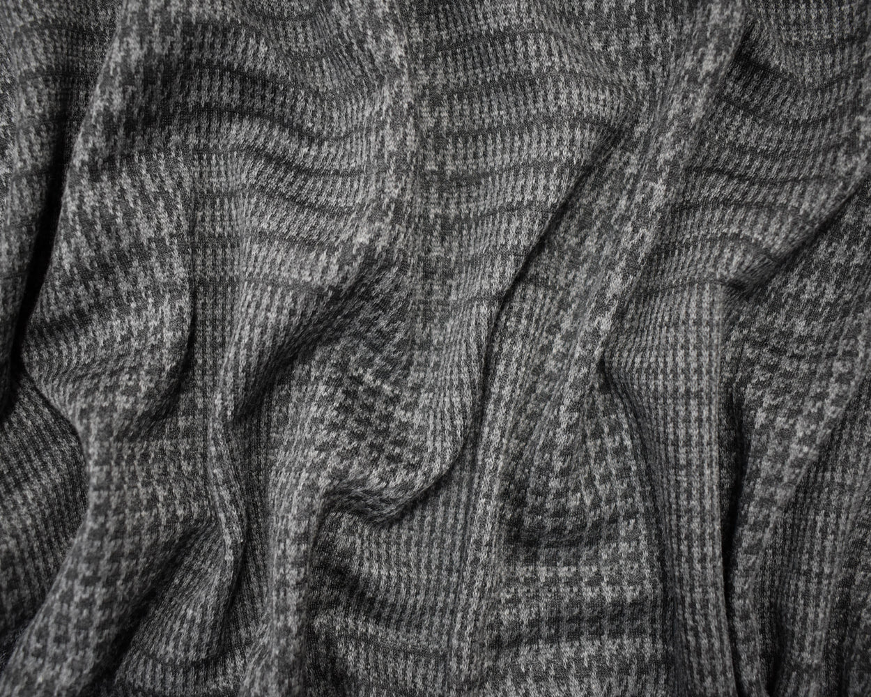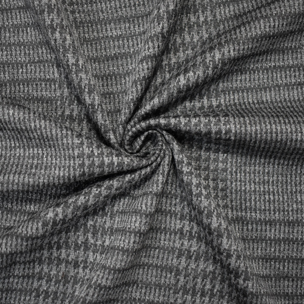 -2 YD PC - Black-Gray Cotton Wool Spandex Stretch Houndstooth Jacquard Double Knit Fabric