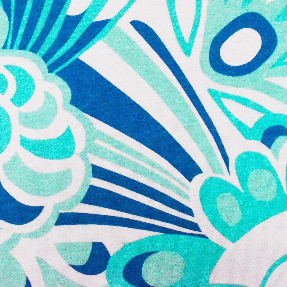 2 YD PC-Blue-White-Multi Abstract Shell Printed Rayon Jersey Knit Fabric