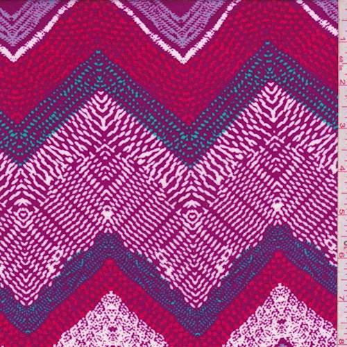 2 YD PC-Mulberry/Red/White Deco Chevron Rayon Challis Fabric