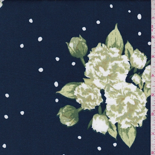 2 YD PC-Navy/White Floral Double Brushed Jersey Knit Fabric