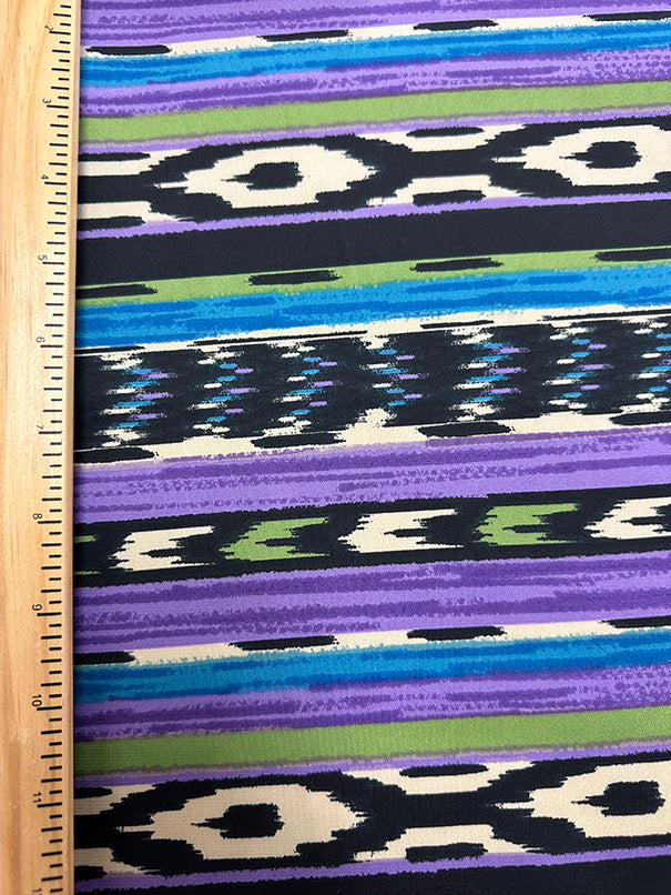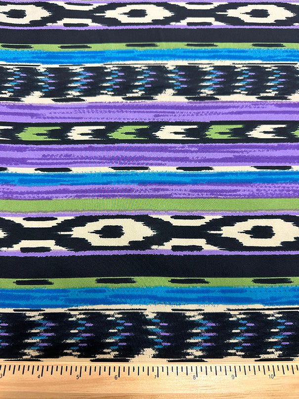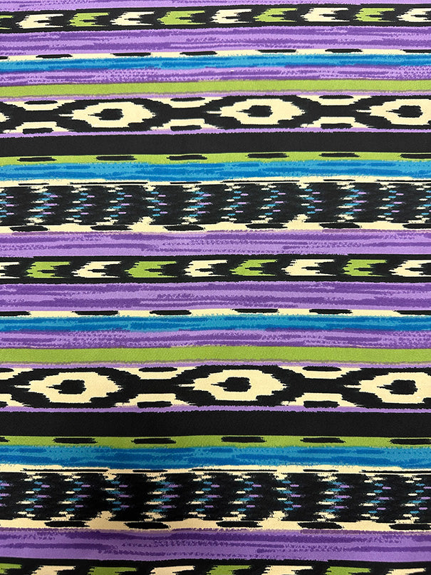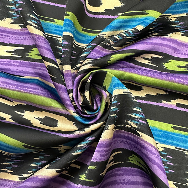 2 YD PC -Purple, Green, Black, Ivory, & Blue Multi Stripe Print Poly Charmeuse Satin Fabric