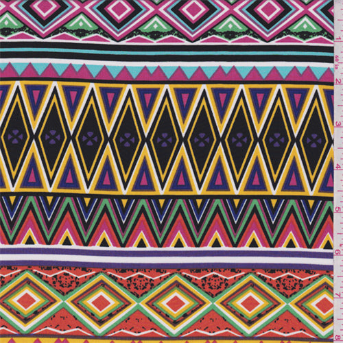 2 YD PC-Tangerine Multi Diamond Stripe Crepe De Chine Fabric