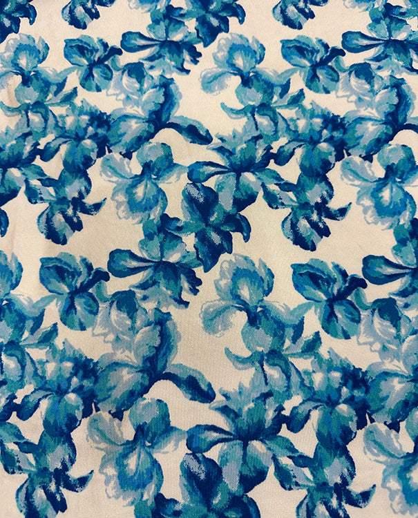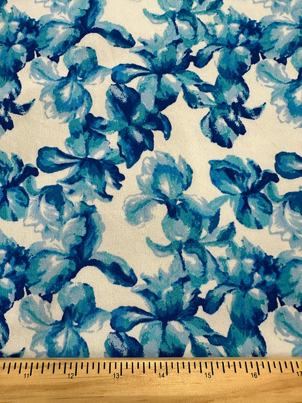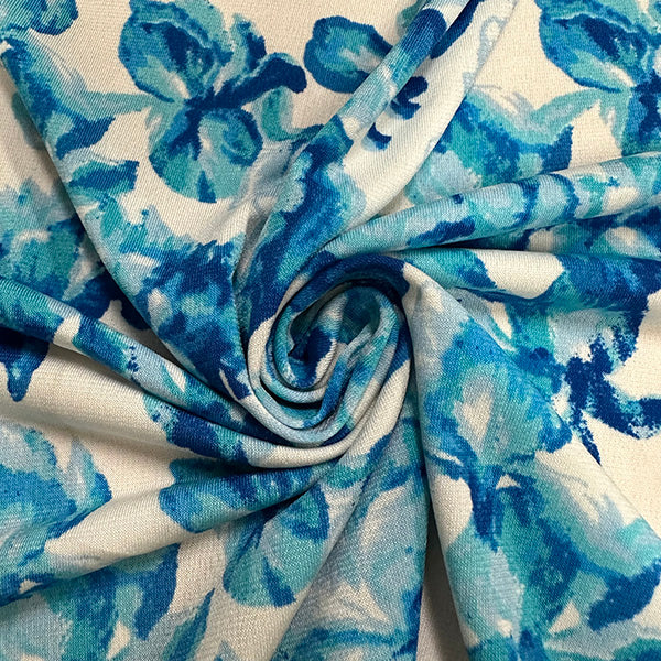 2 YD PC -Turquoise, Teal, & Blue Floral Print on White ITY Jersey Knit Fabric