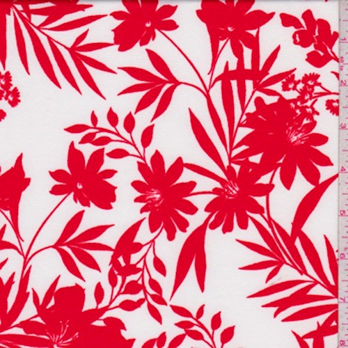 2 YD PC-White/Fire Red Floral Nylon Knit Fabric