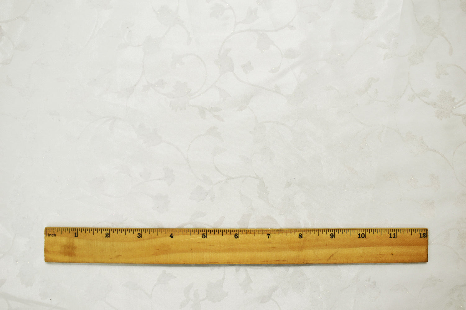 2 YD PC-White-Iridescent Sparkle Nylon Floral Velvet Flocked Taffeta Woven Fabric