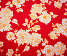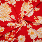 3 1/2 YD PC-Red-Orange-White Poly Floral Printed Pebble Crepe Woven Fabric