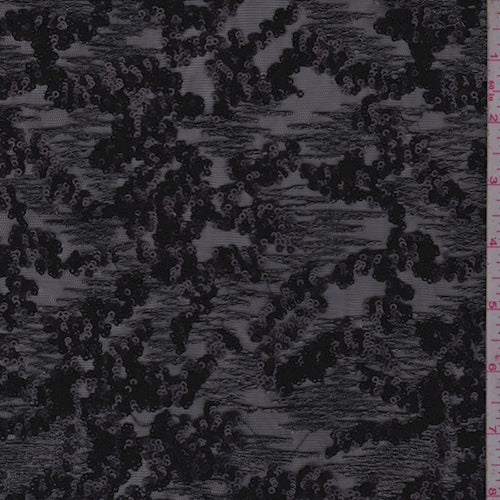 3 YD PC-Black Embroidered Sequin Mesh Fabric