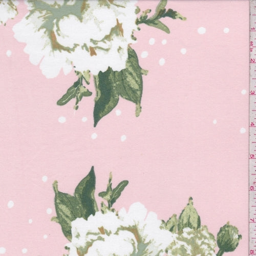3 YD PC-Peach Pink/White Floral Double Brushed Jersey Knit Fabric