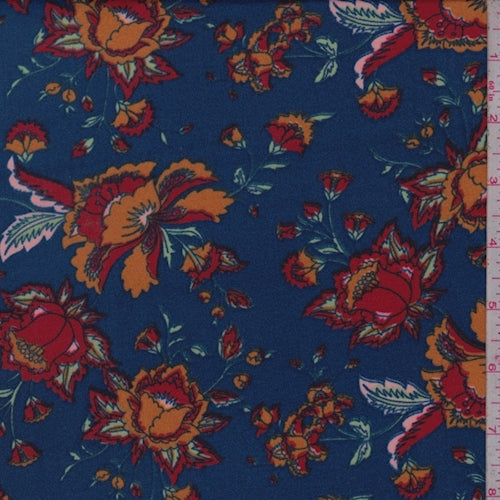 3 YD PC-Sapphire Multi Stylized Small Floral Double Brushed Jersey Knit Fabric
