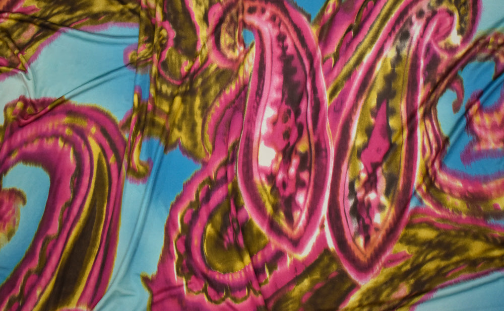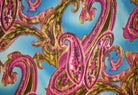 4 1/2 YD PC-Aqua Blue-Pink-Multi Paisley Printed Stretch Silk Jersey Knit Fabric