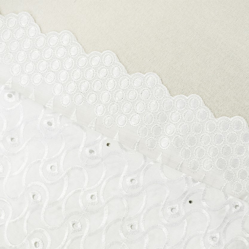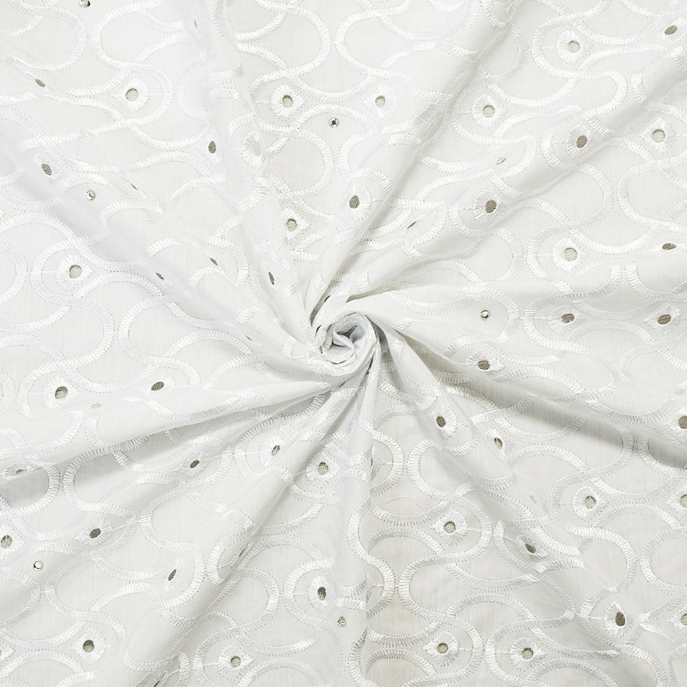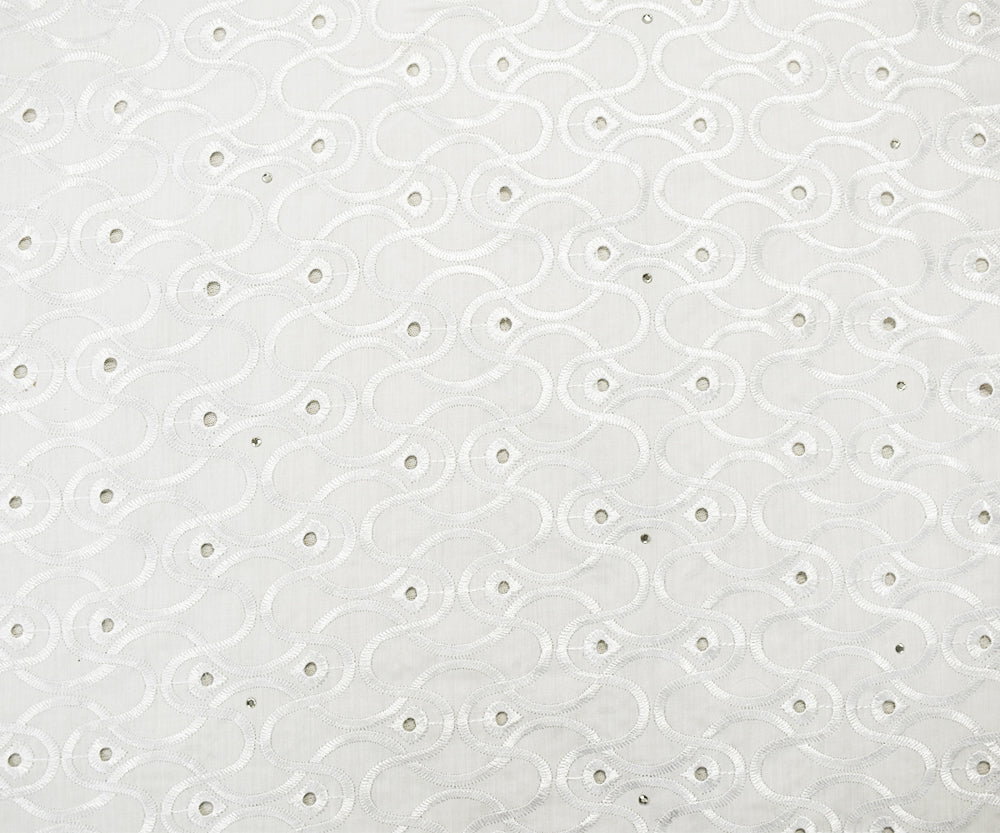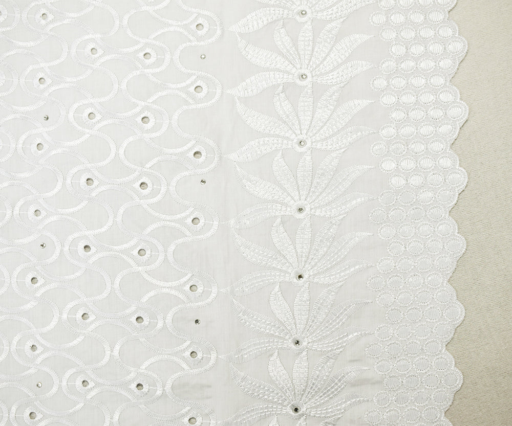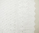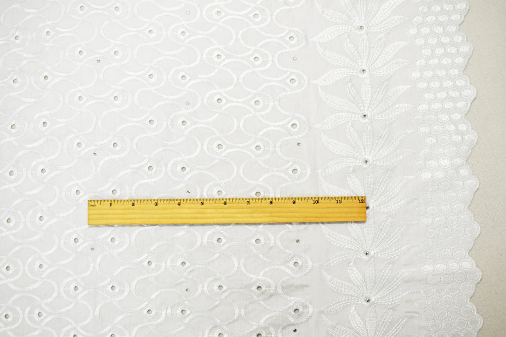 4 1/2 YD PC-White Poly-Cotton Embroidered Floral Scallop Eyelet Rhinestone Woven Fabric