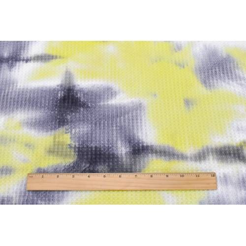 4 1/4 YD PC-Gray/Banana/White Tie Dye Waffle Knit Fabric
