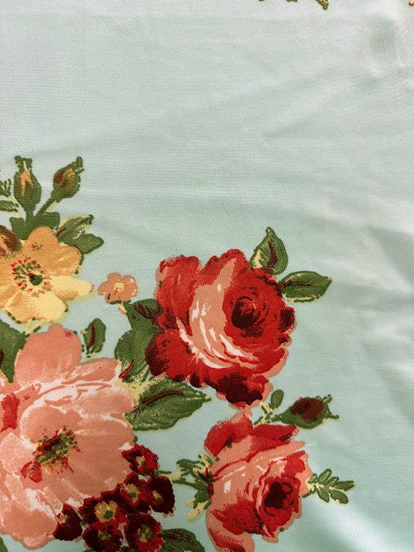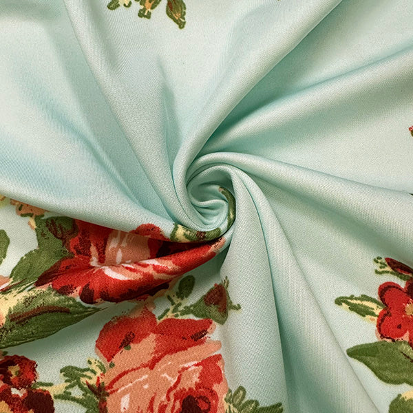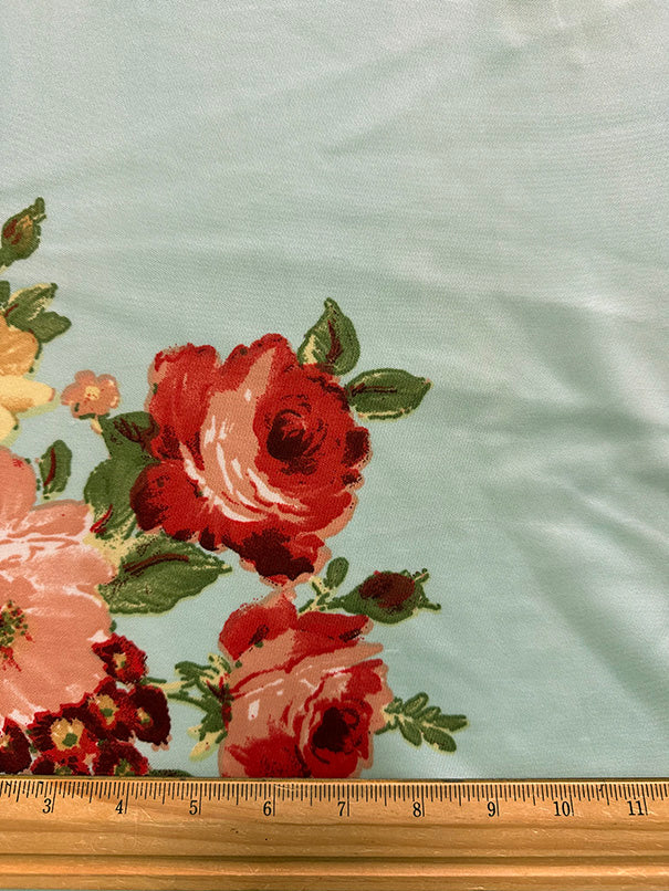 4 3/8 YD PC -Red, Peach, Gold, & Green Floral Print on Mint Green Scuba Knit Fabric