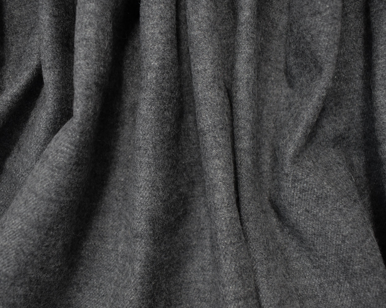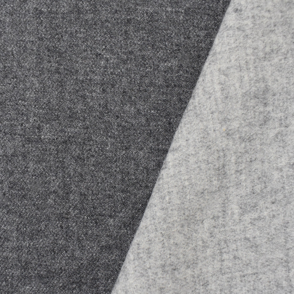 -4 YD PC - 100% wool double woven twill woven fabric with a textured medium-dark gray surface on one side and a lighter gray and white textured surface on the reverse.