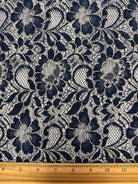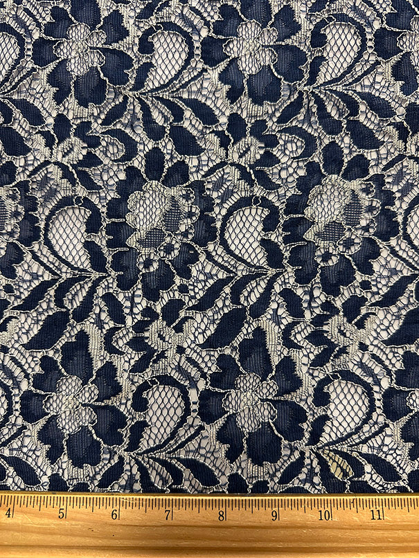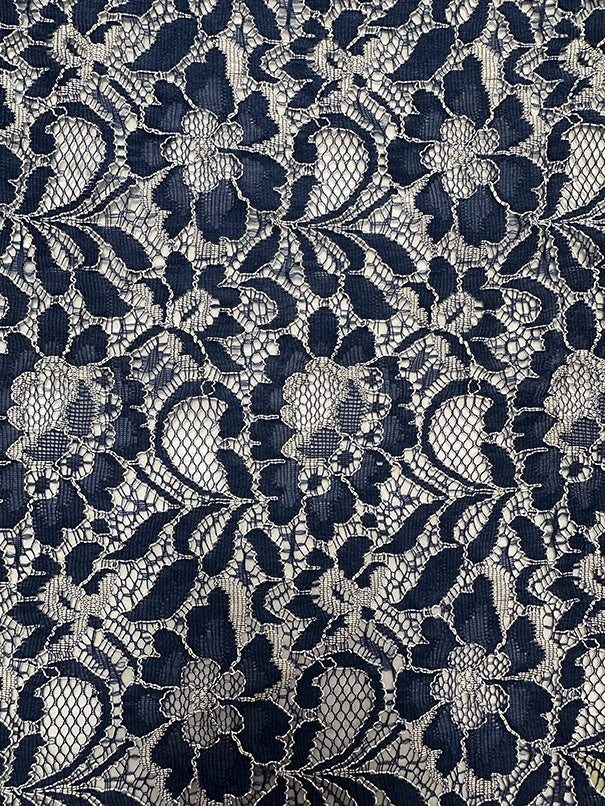4 YD PC -Navy Blue & Ivory Embroidered Floral Lace Fabric