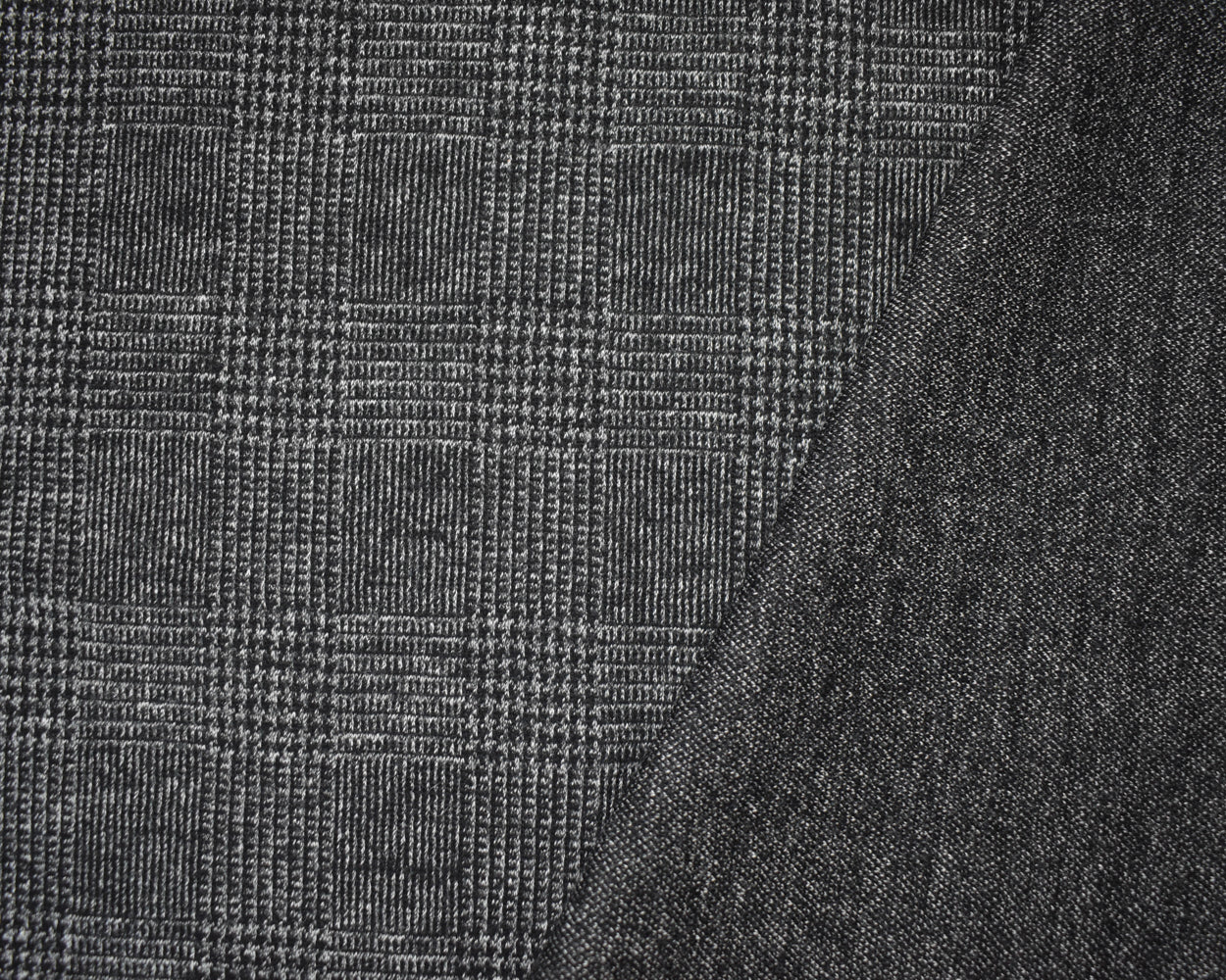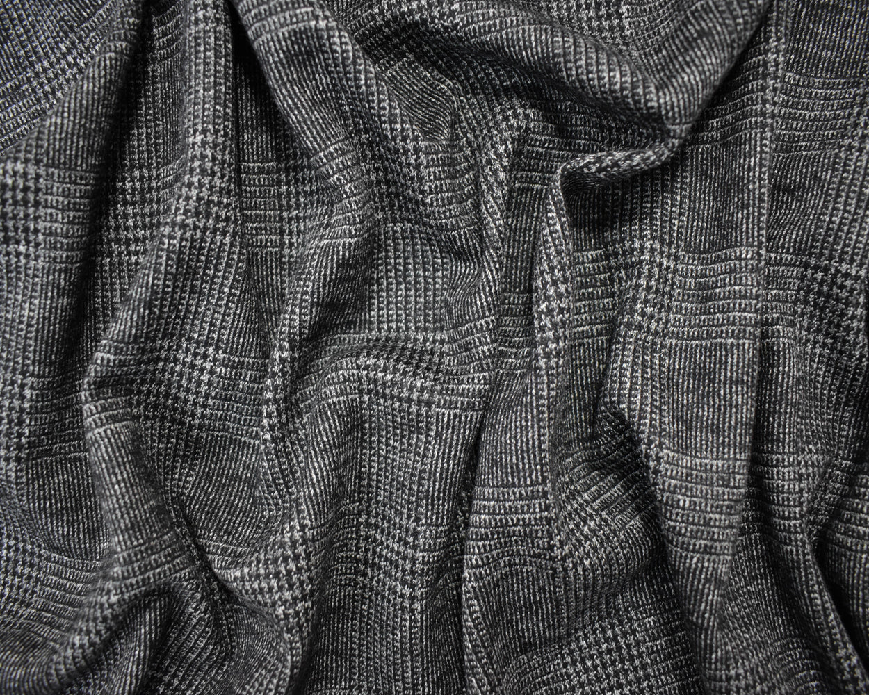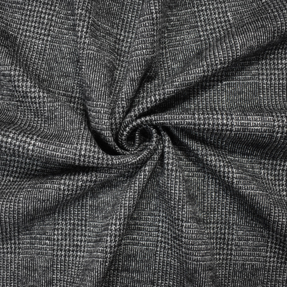 6 YD PC - Black-White-Gray Wool Rayon Spandex Stretch Glen Plaid Jacquard Double Knit Fabric