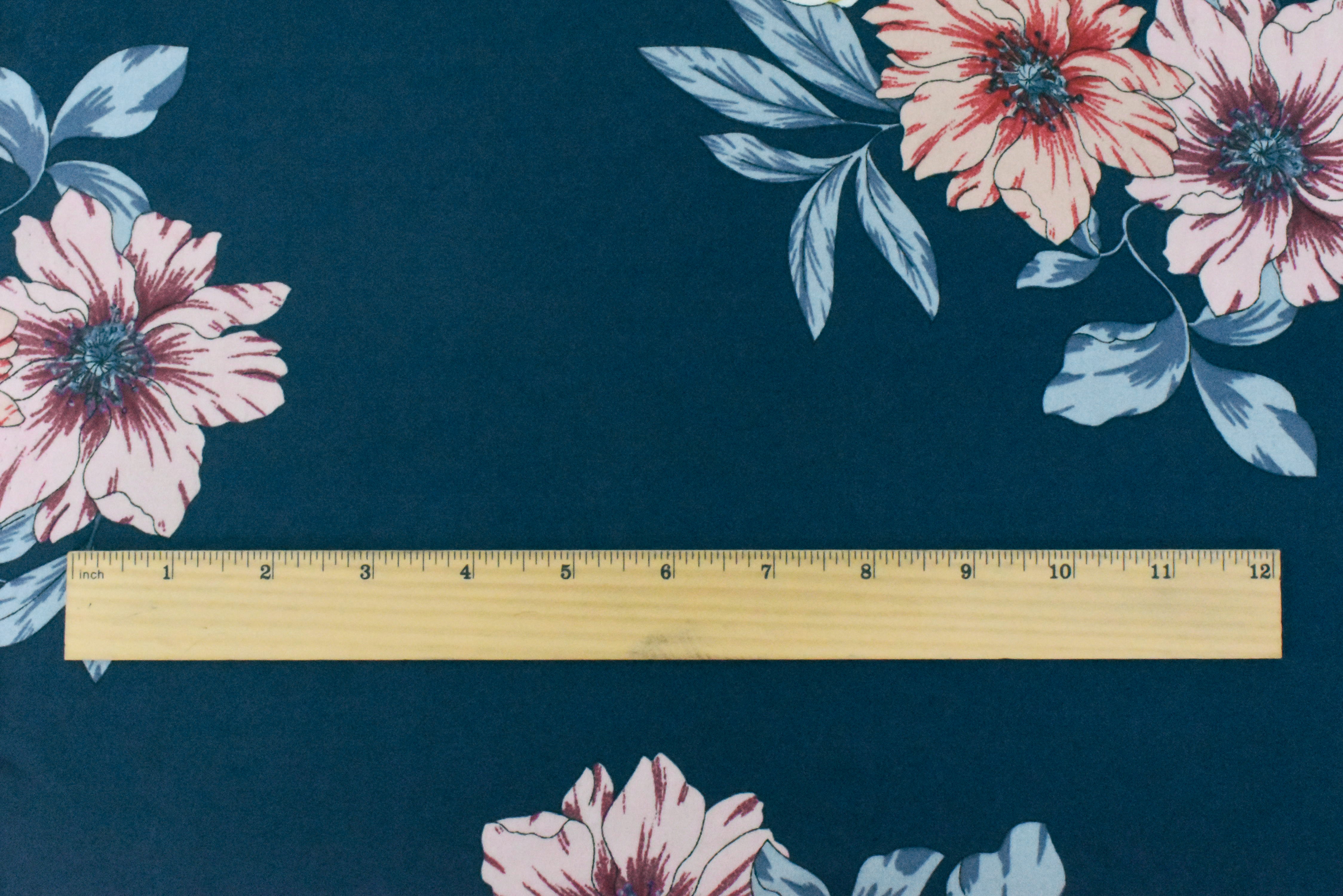 6 YD PC-Blue-Pink-Multi Floral Printed Poly Georgette Woven Fabric