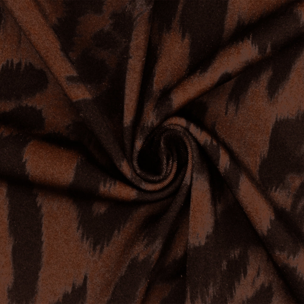 Earth Brown-Black-Multi Famous Maker Leopard Printed Tricot Swimwear Fabric