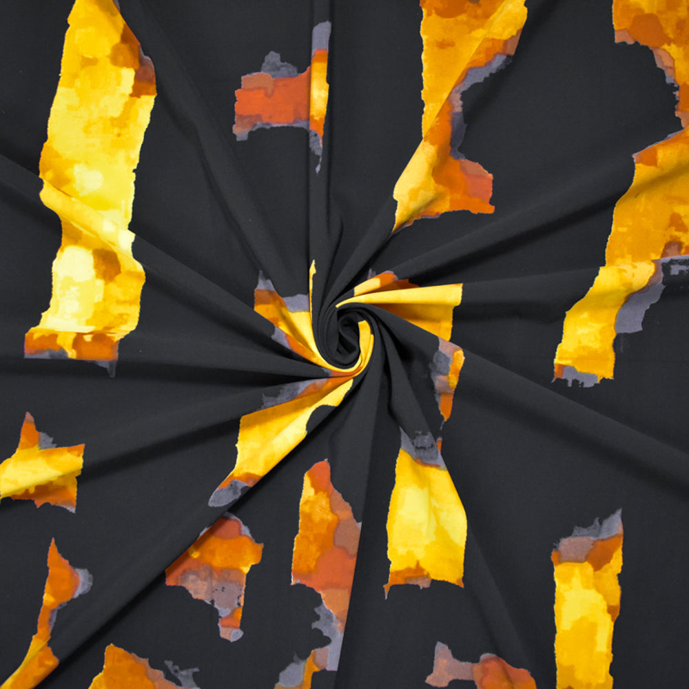 Black--Brown-Multi Poly Stretch Spandex Abstract Printed Tricot Knit Fabric
