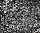 -Black-Ivory Poly Floral Printed Crepe Momie Woven Fabric