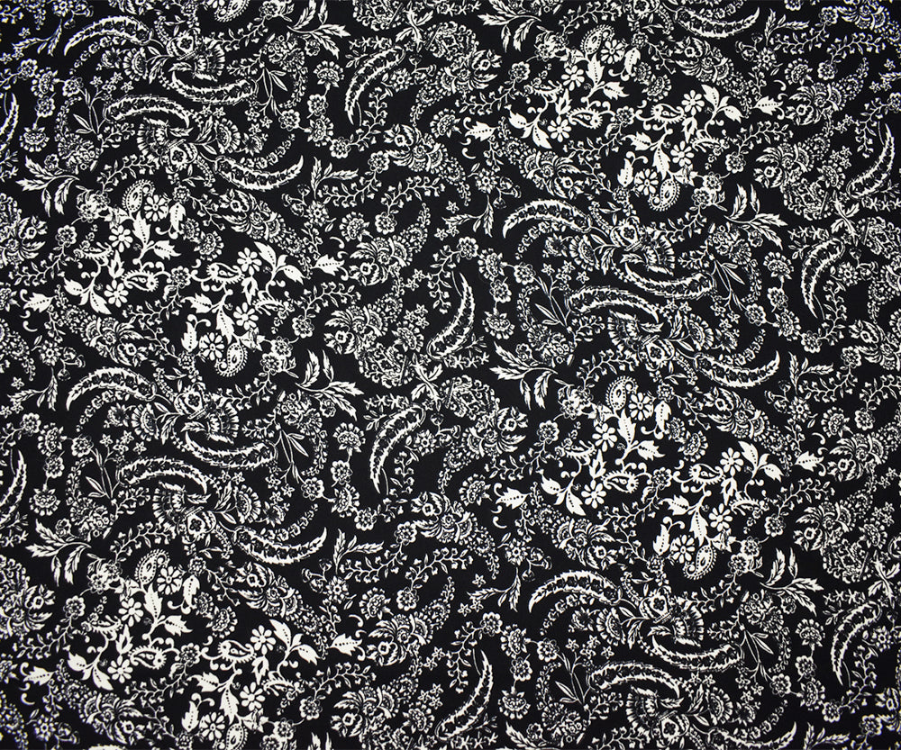 Black-Ivory Poly Floral Printed Crepe Momie Woven Fabric