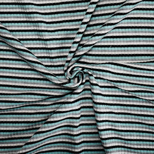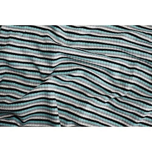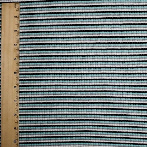 Black/Teal/Multi Striped 4X2 Rib Knit Fabric