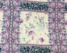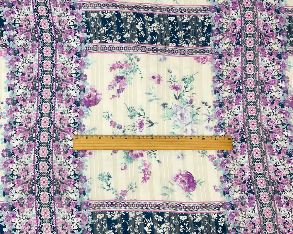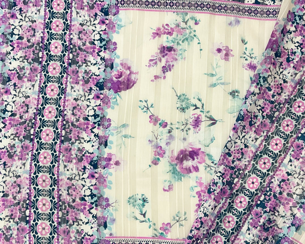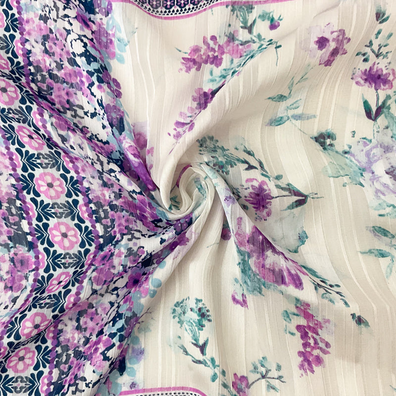 Blue-Multi Poly Floral Printed Satin Stripe Chiffon Woven Fabric