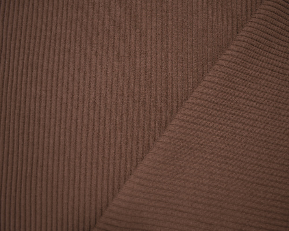 -Brown Cotton Stretch Spandex Solid 3x3 Rib Knit Fabric