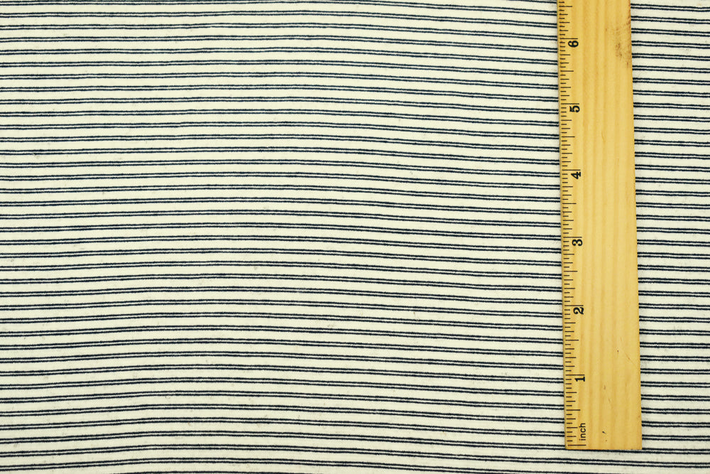 -Deep Navy-Ivory Rayon Stretch Spandex Stripe Jersey Knit Fabric