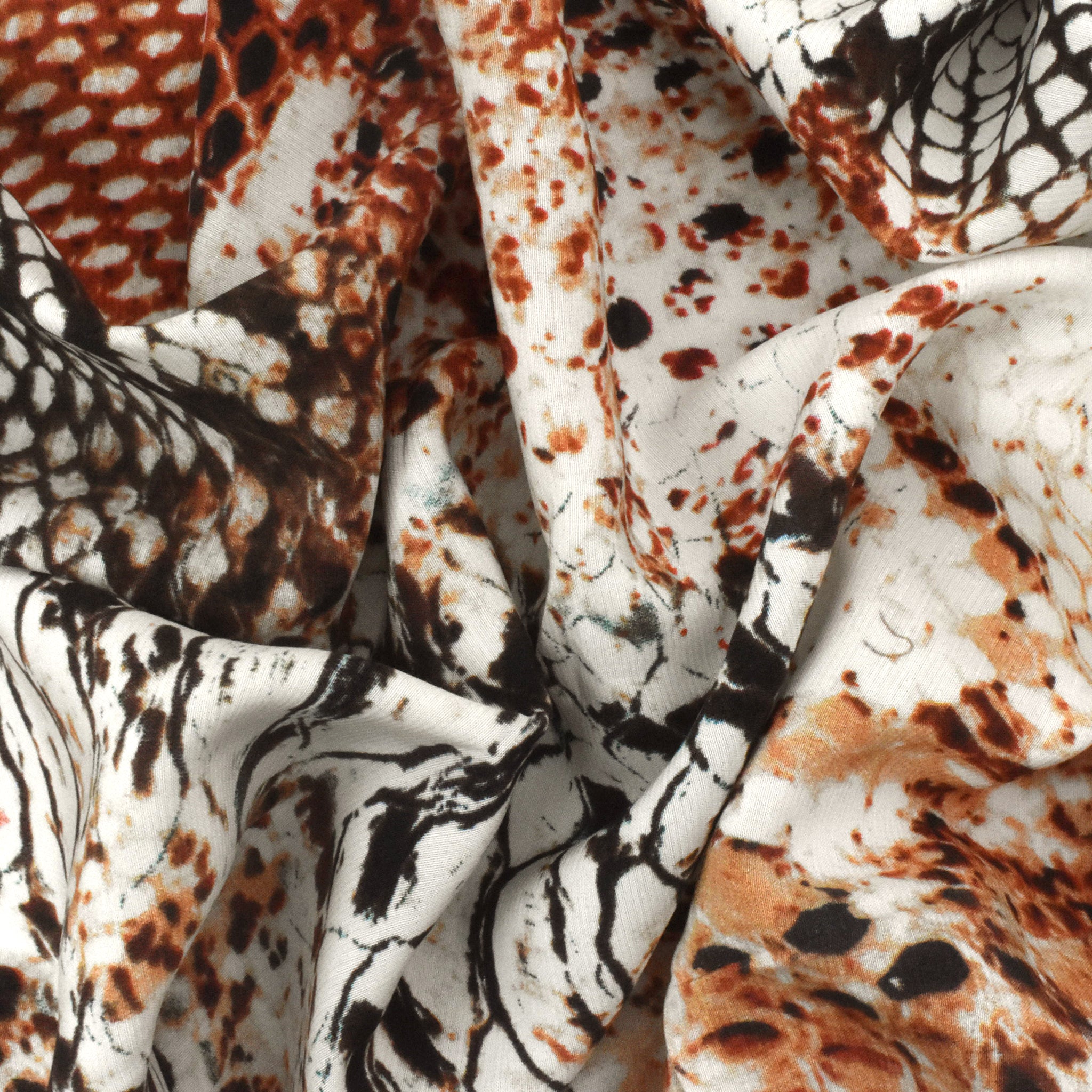 Earth Brown-Multi Famous Designer Reptile Printed Viscose Faille Fabric