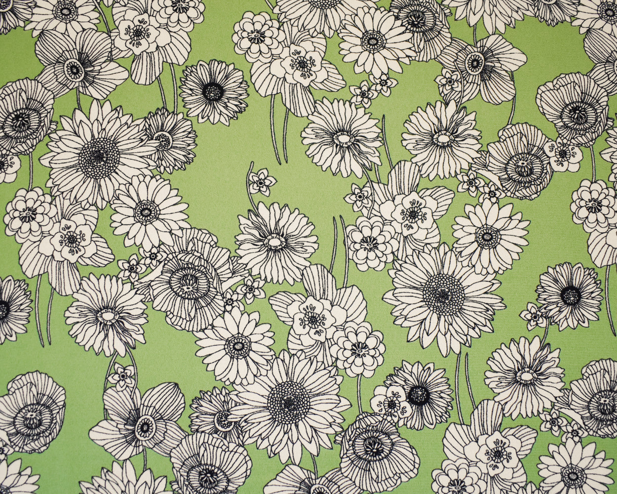 Green-White-Black Poly Floral Printed Crepe Momie Georgette Woven Fabric