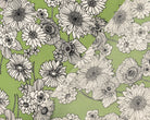 -Green-White-Black Poly Floral Printed Crepe Momie Georgette Woven Fabric