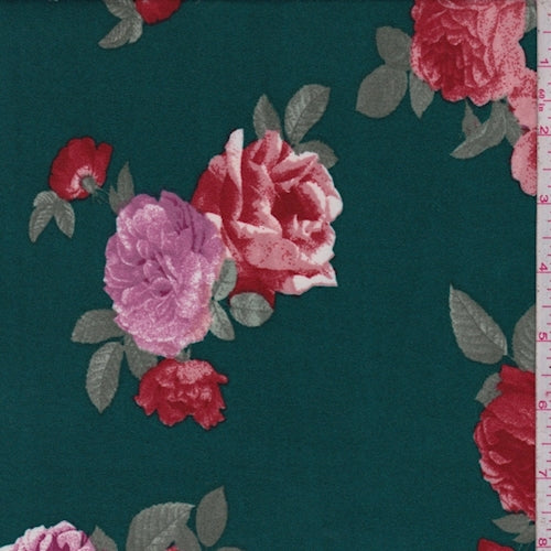 Hunter Multi Rose Cluster Double Brushed Jersey Knit Fabric