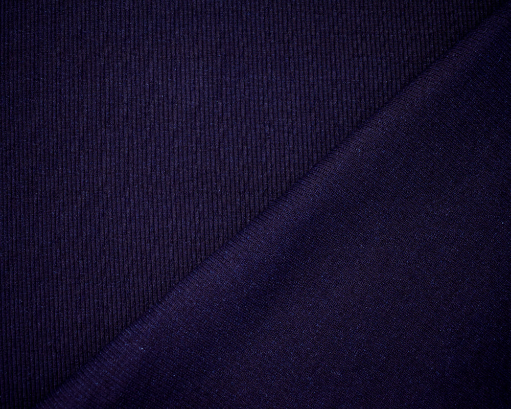 -Navy Blue Cotton Solid Rib Knit Fabric