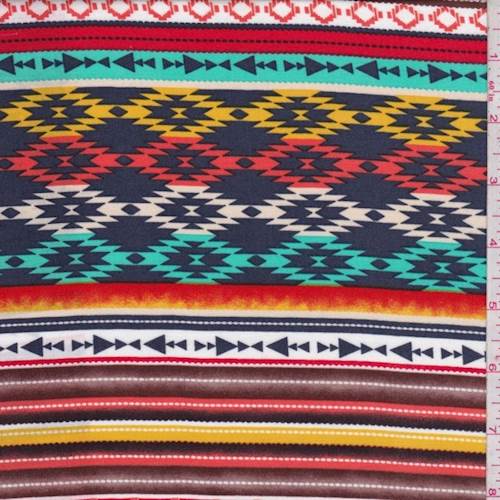 Navy Blue Multi Southwest Stripe Rayon Challis Fabric