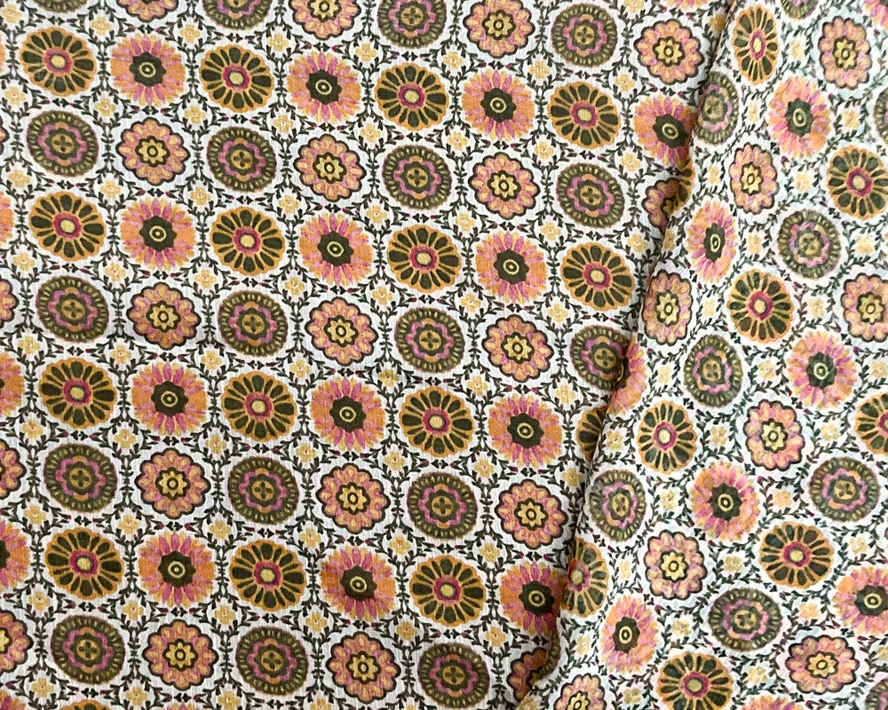 Orange-Green-Multi Poly Floral Printed Crinkle Yoryu Chiffon Woven Fabric