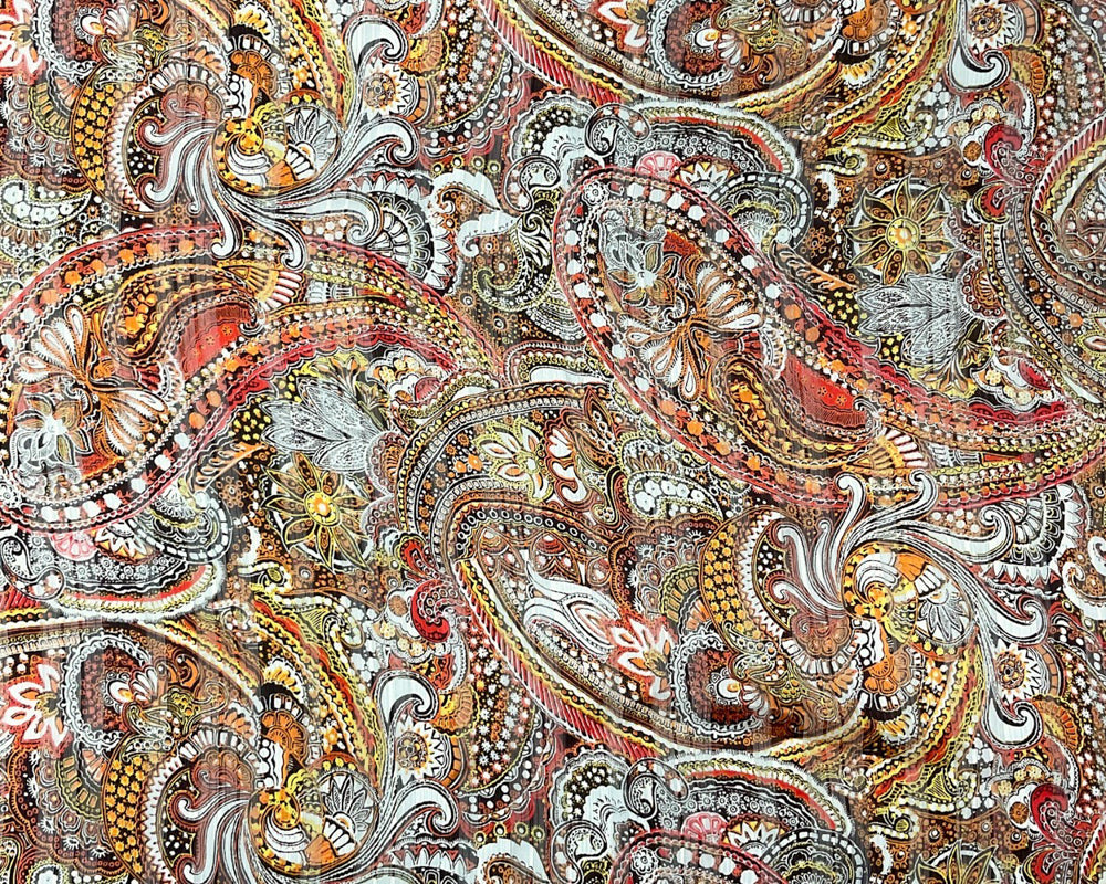 -Orange-Multi Paisley Print Satin Stripe Chiffon Woven Fabric