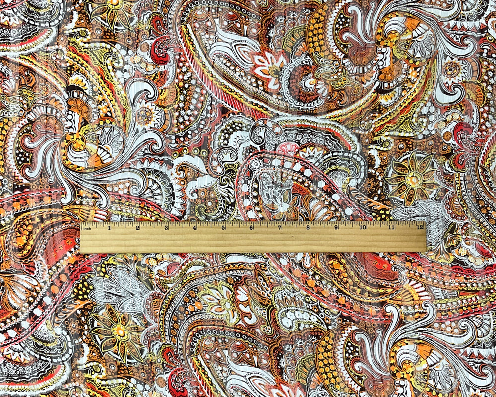 Orange-Multi Paisley Print Satin Stripe Chiffon Woven Fabric