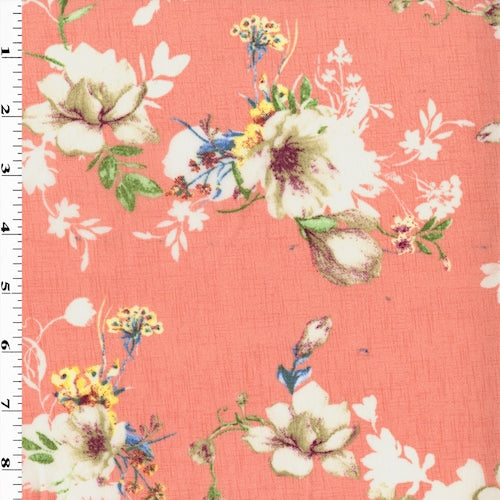 Peach/Green/Multi Printed Floral Semi-Sheer Slub Twill Woven Fabric