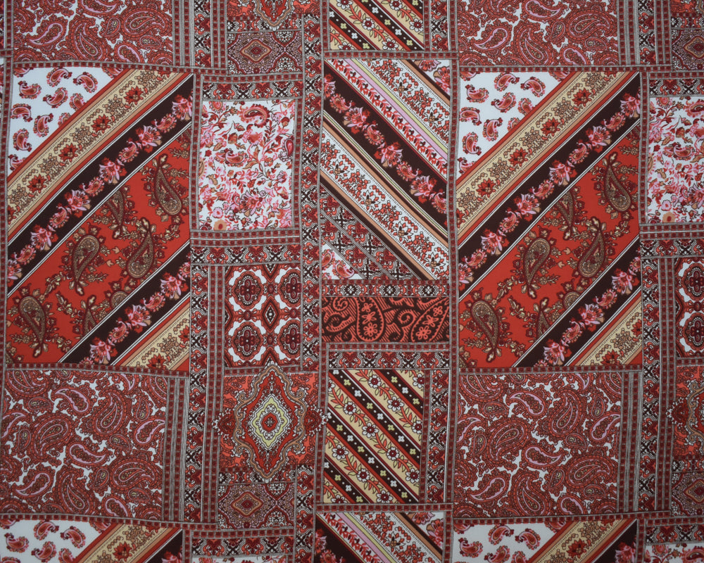 -Red-Beige-Multi Poly Bandana Paisley Printed Crepe Georgette Woven Fabric