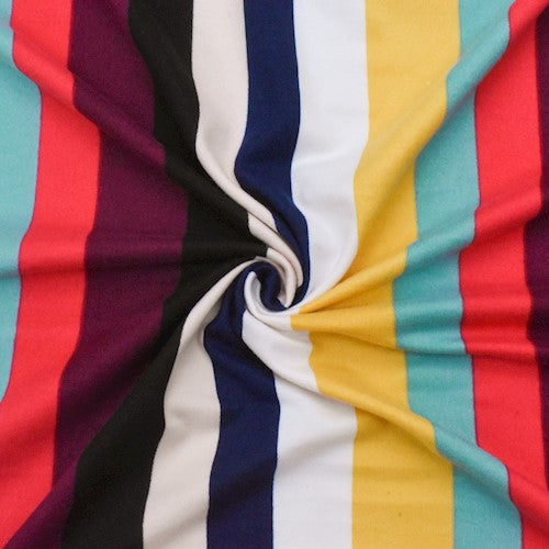 Red/Blue/Multi Stripe ITY Double Brushed Jersey Knit Fabric