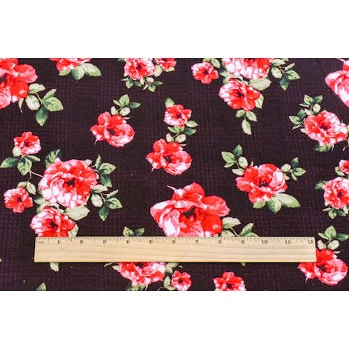 Red Rose/Multi Floral Plaid Brushed Jersey Stretch Knit Fabric