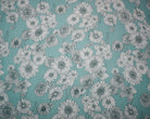 Turquoise-White Poly Floral Printed Pebble Chiffon Woven Fabric