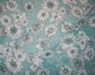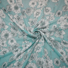 -Turquoise-White Poly Floral Printed Pebble Chiffon Woven Fabric
