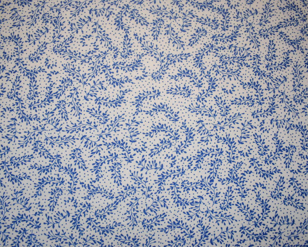 -White-Blue Poly Leaves Printed Crinkle Yoryu Chiffon Woven Fabric