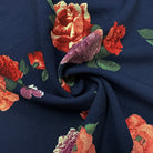 Dark Blue Floral Print Crepe Scuba Double Knit Fabric
